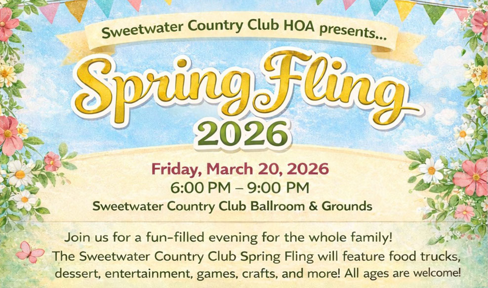 Stay up to date with what’s going on in our community by reading the Sweetwater Country Club Homeowner’s Association Quarterly Newsletter.